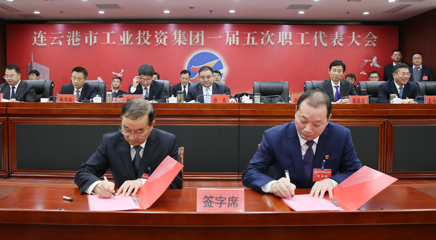 藍(lán)圖繪就,正當(dāng)揚(yáng)帆破浪;重任在肩,更須策馬揚(yáng)鞭。1月14日上午9時(shí),在雄壯的國歌聲中,集團(tuán)公司一屆五次職工代表大會(huì)在總部隆重召開,來自各條戰(zhàn)線的職工代表肩負(fù)全體工投人的重托,齊聚一堂,共商企業(yè)發(fā)展大計(jì)。黨委書記、董事長楊龍作講話,總經(jīng)理胡建明作工作報(bào)告。黨委副書記戴鴻鳴、工會(huì)主席劉承志分別主持大會(huì)。集團(tuán)公司領(lǐng)導(dǎo)楊國新、張其海、朱天松、王士華、汪群、匡友本、陳如軍在主席臺(tái)前排就座。
