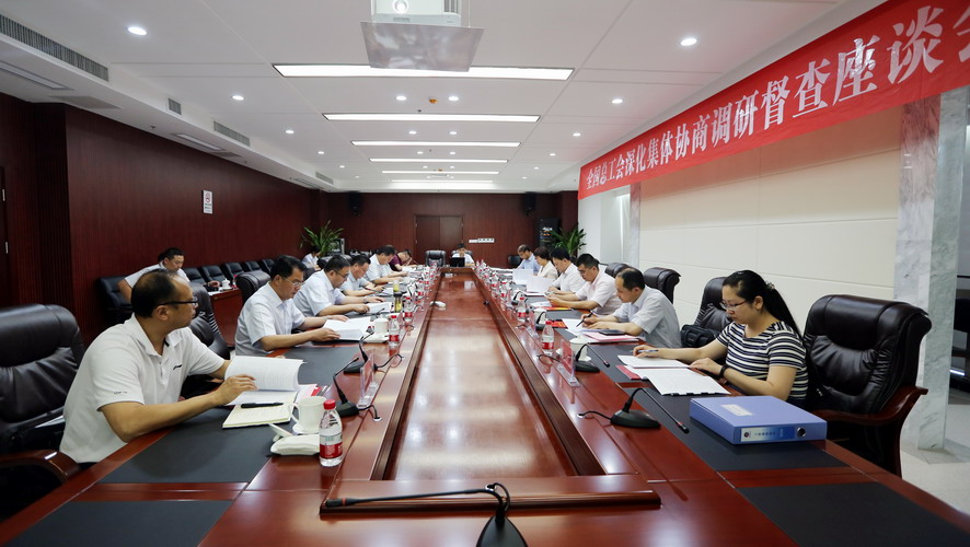 7月11日下午,由河北省總工會黨組成員、副主席萬小明為組長的全國總工會第八調(diào)研督查組一行走進工投,對我公司落實中華全國總工會深化集體協(xié)商工作規(guī)劃情況開展調(diào)研督查,江蘇省總工會權(quán)益保障部部長臧鐵柱,市人大常委會副主任、市總工會主席鄭平,市總工會黨組書記、副主席丁維杰,副主席秦云,集團公司董事長、黨委書記楊龍,黨委委員、工會主席戴鴻鳴陪同調(diào)研。