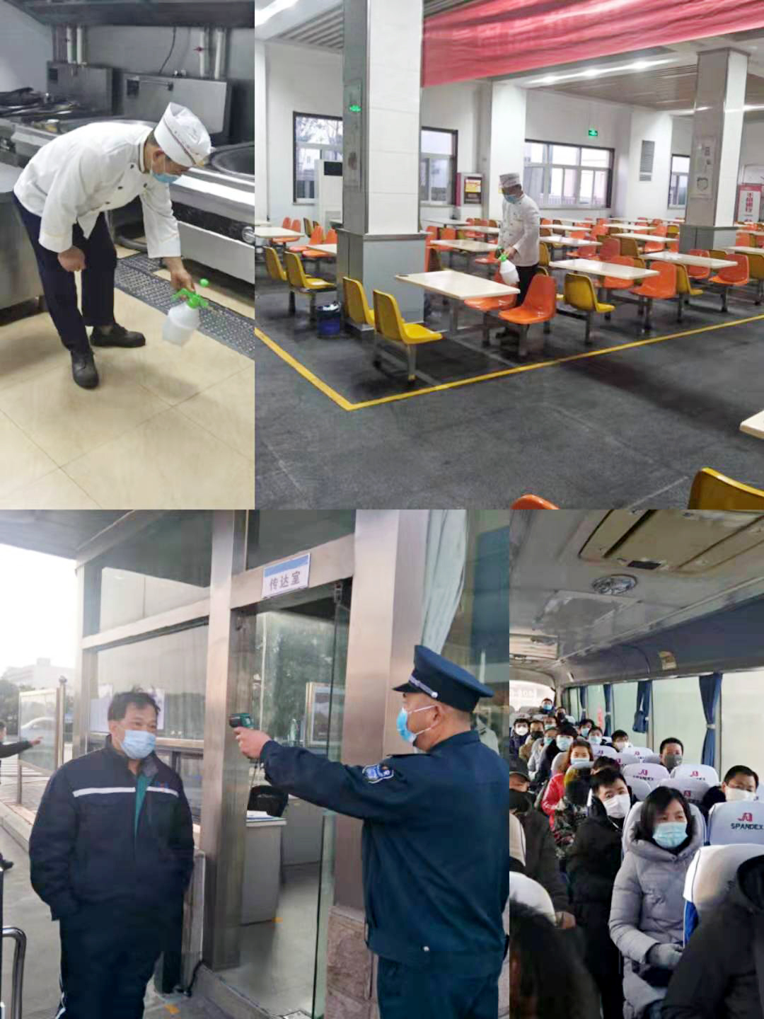 全力做到“三個(gè)全覆蓋”。一是消殺全覆蓋,做到無(wú)死角。結(jié)合疫情防控實(shí)施方案全面開(kāi)展衛(wèi)生整治消殺,對(duì)進(jìn)廠車輛、食堂、廁所、辦公區(qū)、操作平臺(tái)、作業(yè)電梯等進(jìn)行全面消毒,每4小時(shí)進(jìn)行噴灑消毒液消毒。二是摸排全覆蓋,做到無(wú)縫隙。以部門為單位進(jìn)行全員摸排并建立日?qǐng)?bào)制度。在公司門口使用溫度檢測(cè)儀器測(cè)量入廠人員體溫,體溫正常允許進(jìn)入,發(fā)現(xiàn)體溫異常人員立即上報(bào)公司安全部或者值班領(lǐng)導(dǎo)執(zhí)行應(yīng)急隔離救援。對(duì)外地回廠人員,特別對(duì)疫區(qū)或途徑疫區(qū)的到廠人員進(jìn)行重點(diǎn)摸排,對(duì)與武漢方面人員有接觸的員工采取暫停上班、居家隔離措施。三是宣傳全覆蓋,做到無(wú)遺漏。利用公司宣傳欄、紅色長(zhǎng)廊、網(wǎng)站、公眾號(hào)、微信群等宣傳陣地開(kāi)展宣傳培訓(xùn)。將公司的防控措施、應(yīng)急預(yù)案、就醫(yī)流程、疫情防護(hù)等應(yīng)知應(yīng)會(huì)的防疫知識(shí)傳達(dá)到每一位員工,引導(dǎo)他們科學(xué)防疫。