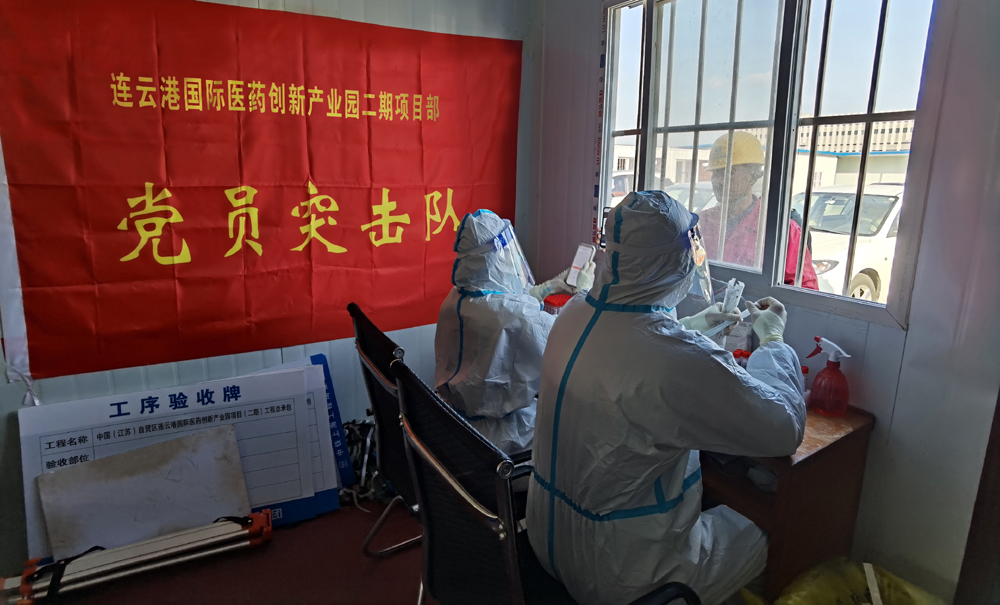 “請(qǐng)大家保持一米線,戴好口罩,有序參與核酸檢測(cè),謝謝配合!”來自市級(jí)重大項(xiàng)目連云港國際醫(yī)藥創(chuàng)新產(chǎn)業(yè)園二期項(xiàng)目黨員突擊隊(duì)的成員席時(shí)棟、陳家輝喊道。據(jù)悉,該項(xiàng)目目前按照上級(jí)相關(guān)規(guī)定,實(shí)行閉環(huán)管理,做好相關(guān)疫情防控工作。“我們項(xiàng)目部嚴(yán)格按照市、開發(fā)區(qū)相關(guān)規(guī)定,做好閉環(huán)施工,疫情防控、項(xiàng)目建設(shè)兩手抓、兩手硬。”來自集團(tuán)棚戶區(qū)改造裕源三期項(xiàng)目負(fù)責(zé)人青年黨員徐震說道。