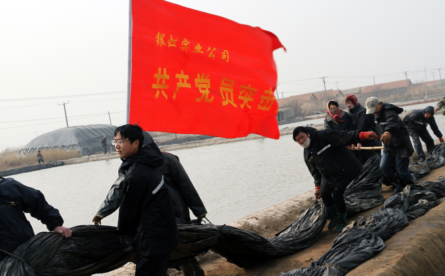 11月16日,一面紅色的黨員志愿者服務(wù)隊隊旗在陽光下飄展,在一片雪白結(jié)晶池埝的映襯下,顯得格外鮮艷。徐圩投資公司深港服務(wù)區(qū)12名黨員志愿者頂著寒冷的晨風(fēng),緊忙趕往新灘服務(wù)區(qū)原料鹽基地建設(shè)現(xiàn)場,幫助其12個單元搶裝池埝土工布,也為這個冬天添加幾許新鮮的氣息。