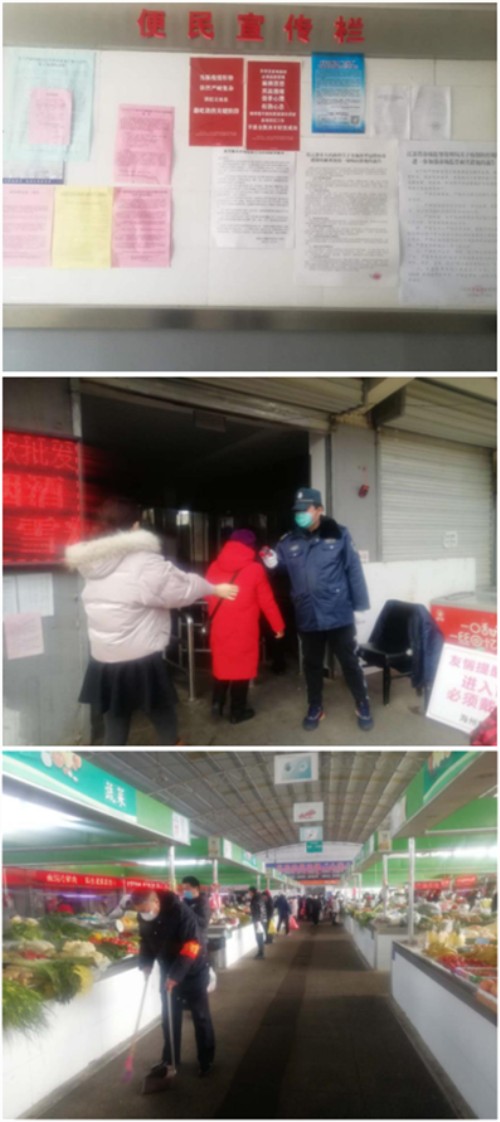 強(qiáng)化市場(chǎng)內(nèi)部管控。為進(jìn)一步避免人群大規(guī)模聚集,調(diào)整市場(chǎng)開放、關(guān)閉時(shí)間,緩解人流量,勸導(dǎo)群眾不信謠、不傳謠,無需恐慌搶購(gòu)。督促農(nóng)貿(mào)市場(chǎng)100多戶經(jīng)營(yíng)戶每天提前全部做好物資的擺放,所有進(jìn)出市場(chǎng)人員保留1個(gè)進(jìn)出口通道依次進(jìn)出,并指派專人在入口負(fù)責(zé)體溫檢測(cè);對(duì)進(jìn)入市場(chǎng)的等各類車輛實(shí)行指定區(qū)域有序停放,確保市場(chǎng)內(nèi)無占道現(xiàn)象。