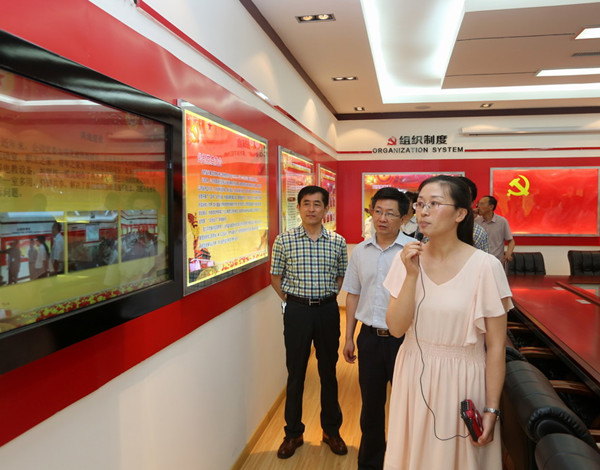 在我公司黨建一體化活動(dòng)室,解說(shuō)員向觀摩團(tuán)一行詳細(xì)介紹了公司黨建工作與經(jīng)濟(jì)工作目標(biāo)同向、任務(wù)同擔(dān)、責(zé)任同負(fù)、獎(jiǎng)懲同步的“黨建經(jīng)濟(jì)一體化”工作的經(jīng)驗(yàn)與做法,客人們現(xiàn)場(chǎng)觀摩了公司黨建活動(dòng)室及相關(guān)基礎(chǔ)臺(tái)帳。陳軍副部長(zhǎng)對(duì)我公司特色黨建工作給予了充分肯定,特別是陣地建設(shè)、黨建考核、主題活動(dòng)等,對(duì)進(jìn)一步提升新社工委各直屬黨組織黨建工作科學(xué)化,示范引領(lǐng)全市非公企業(yè)黨建工作發(fā)揮了積極作用。(徐靜)