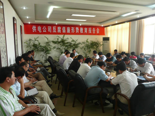 近日,我公司邀請(qǐng)了市紀(jì)委常委、市紀(jì)委秘書長(zhǎng)、市監(jiān)察局副局長(zhǎng)雷生保同志來我公司作反腐倡廉形勢(shì)教育報(bào)告,公司領(lǐng)導(dǎo)、機(jī)關(guān)中層干部、各供電所領(lǐng)導(dǎo)班子及部分職工代表參加了會(huì)議。