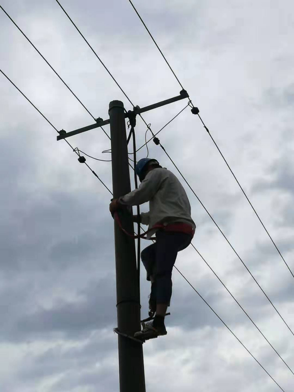 7月6日中午12時,狂風夾著暴雨突然而降。下午3點20分起,供電所值班電話一個接著一個。“大新水庫B標84號低壓線被大風刮碰一起已停電”、“黃下線41號變低壓線大風刮碰起火”、“十七圩停電”、“勝利圩停電”、“81號變停電”。五個事故點居民上百戶,淡水池塘近千畝,鈴聲就是命令,值班電工王兜柱、盧正遷及時準備好工器具,在風小雨停間隔立刻奔赴現(xiàn)場逐一處理。一直奮戰(zhàn)到下午6點,兩位同志才將所有故障處理完畢,帶著安心的微笑返回所里。(王學忠)
