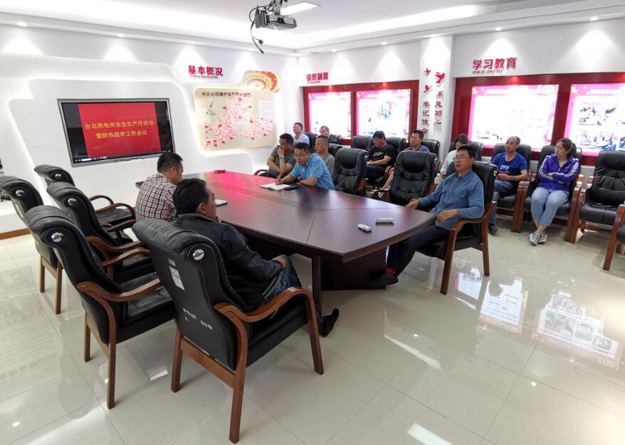 6月6日上午,臺(tái)北供電所在該所二樓會(huì)議室召開2019年安全生產(chǎn)月活動(dòng)暨防汛防旱工作會(huì)議,傳達(dá)學(xué)習(xí)了經(jīng)理孫政權(quán)、副經(jīng)理袁慶國(guó)的講話及公司相關(guān)文件精神。