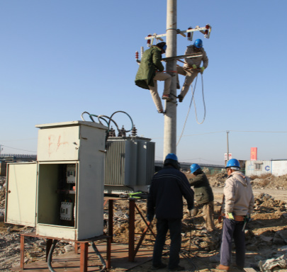 近日,臺北供電所組織職工為金海連云新城醫(yī)院項目安裝臨時用電,圖為施工現(xiàn)場。(電宣)