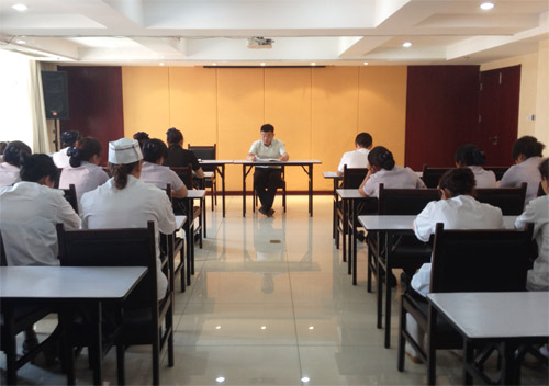 在培訓(xùn)中,陳總監(jiān)結(jié)合諸多事故案例,強(qiáng)調(diào)了預(yù)防食物中毒的重要性,讓參加培訓(xùn)的員工了解什么是食物中毒、容易引起食物中毒的食材主要有哪些、怎樣識(shí)別和防止食材霉腐變質(zhì)。餐飲部經(jīng)理郭天麗重點(diǎn)講解了食物中毒的幾種特征及一般急救方法。