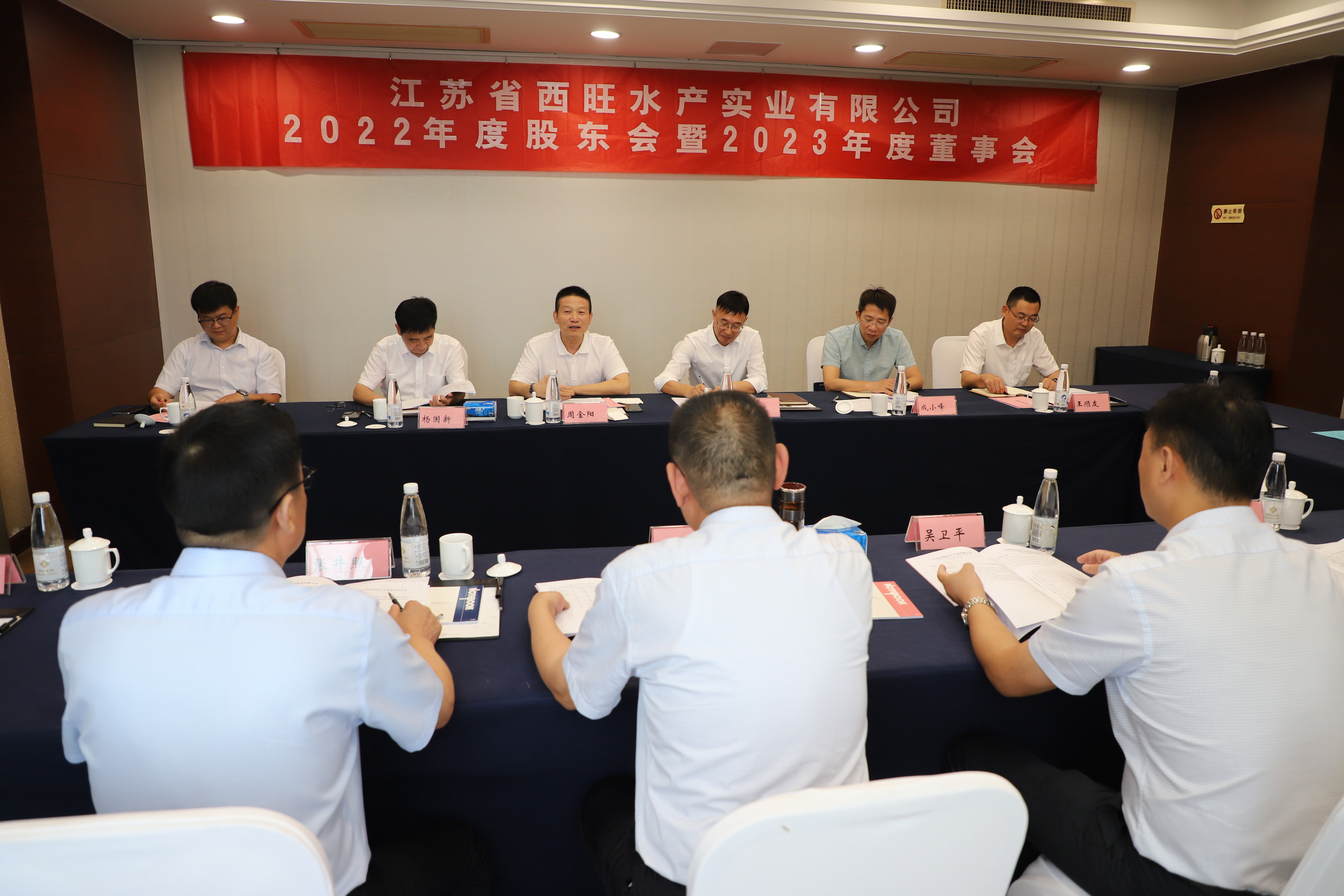 8月17日,江蘇省西旺水產(chǎn)實業(yè)有限公司2022年度股東會暨2023年度董事會在連云港市云臺賓館一樓會議室召開,省沿海開發(fā)集團(tuán)黨委副書記、總經(jīng)理周金陽,省沿海開發(fā)集團(tuán)投資發(fā)展部副總經(jīng)理成小峰,省沿海開發(fā)集團(tuán)企業(yè)管理部副總經(jīng)理陳齊,市工業(yè)投資集團(tuán)黨委副書記、副董事長、總經(jīng)理張六林,市工業(yè)投資集團(tuán)黨委委員、常務(wù)副總經(jīng)理楊國新等股東代表、董事代表出席了會議。