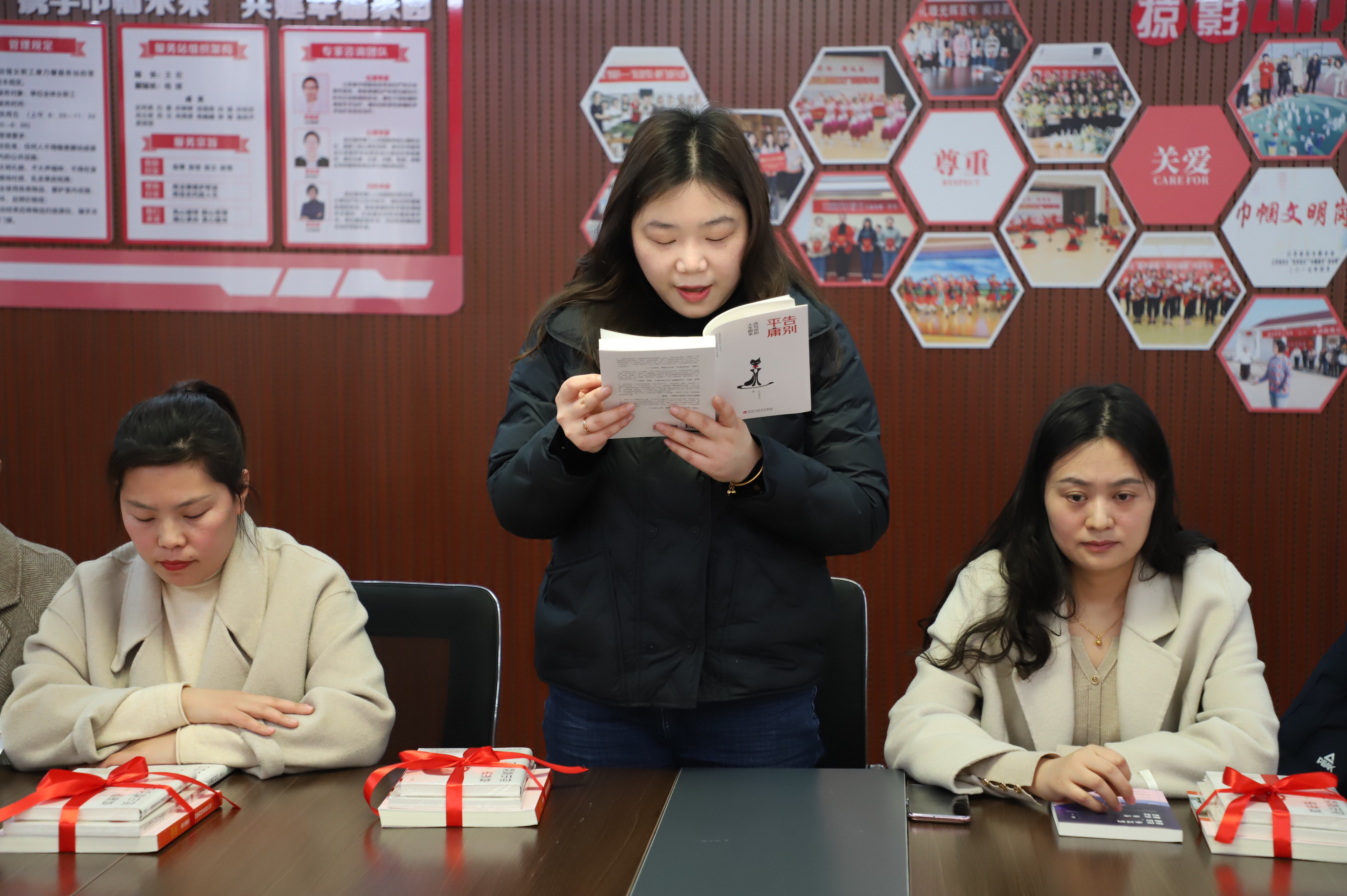 來吧,來吧,相約三八。相約在春光明媚的三月里,相約在閱讀分享的文韻里,相約在康乃馨服務(wù)站里......。3月7日下午14:00,公司工會開展的“巾幗心向黨”主題讀書分享會在女職工朗朗的誦讀中拉開帷幕。來自公司各條戰(zhàn)線上的女職工們從教育、文學(xué)、哲學(xué)、健康等方面內(nèi)容,進(jìn)一步抒發(fā)家國情懷,弘揚(yáng)時(shí)代精神,給我們帶來了一場聽覺盛宴。塑造知識型的“她”,并為女職工贈送有關(guān)紅色主題、女性勵志等方面的書籍,在廣大婦女中營造“好讀書、讀好書、讀書好”的良好氛圍,促進(jìn)家庭文明、社會和諧。