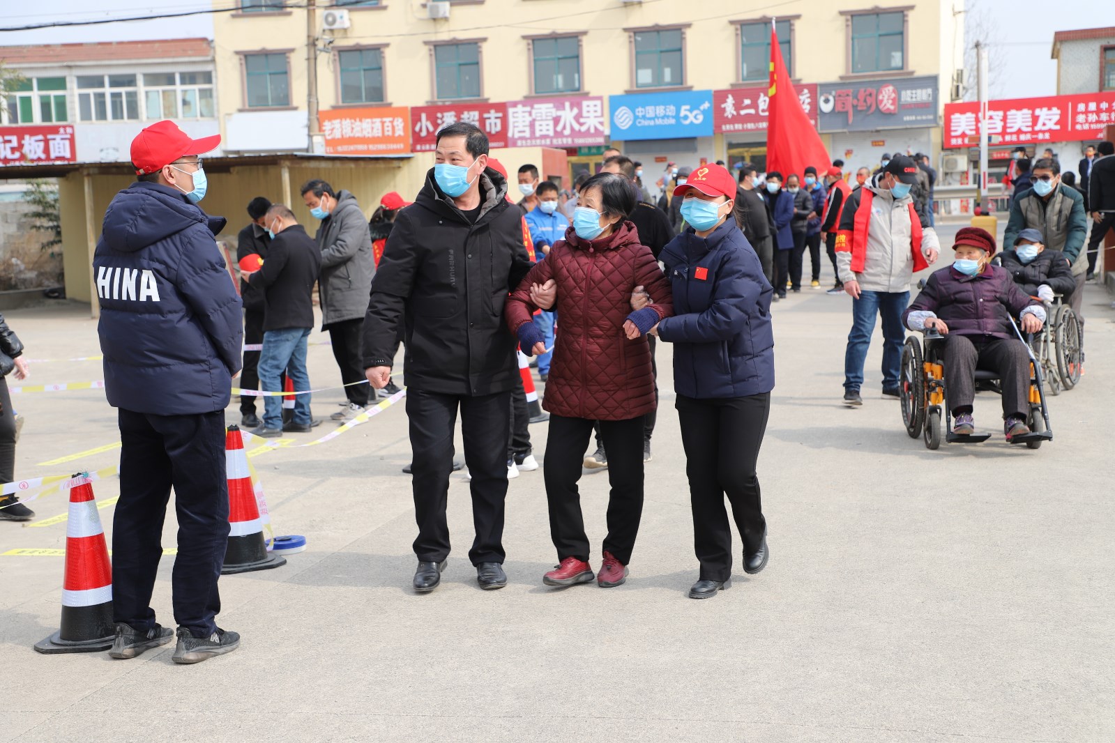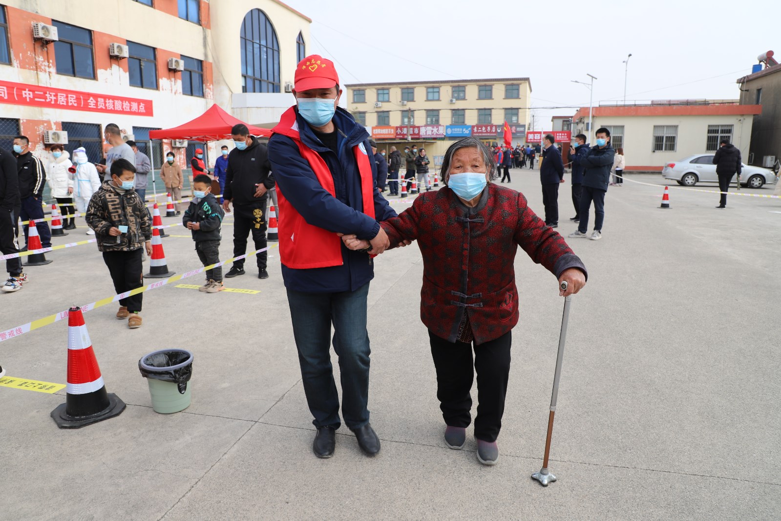 檢測當(dāng)天,上午7點(diǎn)半核酸檢測點(diǎn)準(zhǔn)備就緒,核酸檢測正式開始。檢測點(diǎn)用警戒線拉起通道,居民均按規(guī)定佩戴口罩有序排隊。排隊候檢的居民先登記身份信息及聯(lián)系方式,再由引導(dǎo)員帶隊到指定點(diǎn)位接受醫(yī)護(hù)人員的采樣,年紀(jì)大且腿腳不便的老人由現(xiàn)在志愿者攙扶,優(yōu)先進(jìn)行核酸檢測。采樣完畢后,大家按照標(biāo)識盡快從出口處離開檢測點(diǎn),減少人員聚集。王靜、許冬彥等志愿者不時地提醒大家注意安全、保持一定安全距離,并維持秩序。整個過程緊張有序,核酸檢測工作于下午五點(diǎn)左右順利完成。