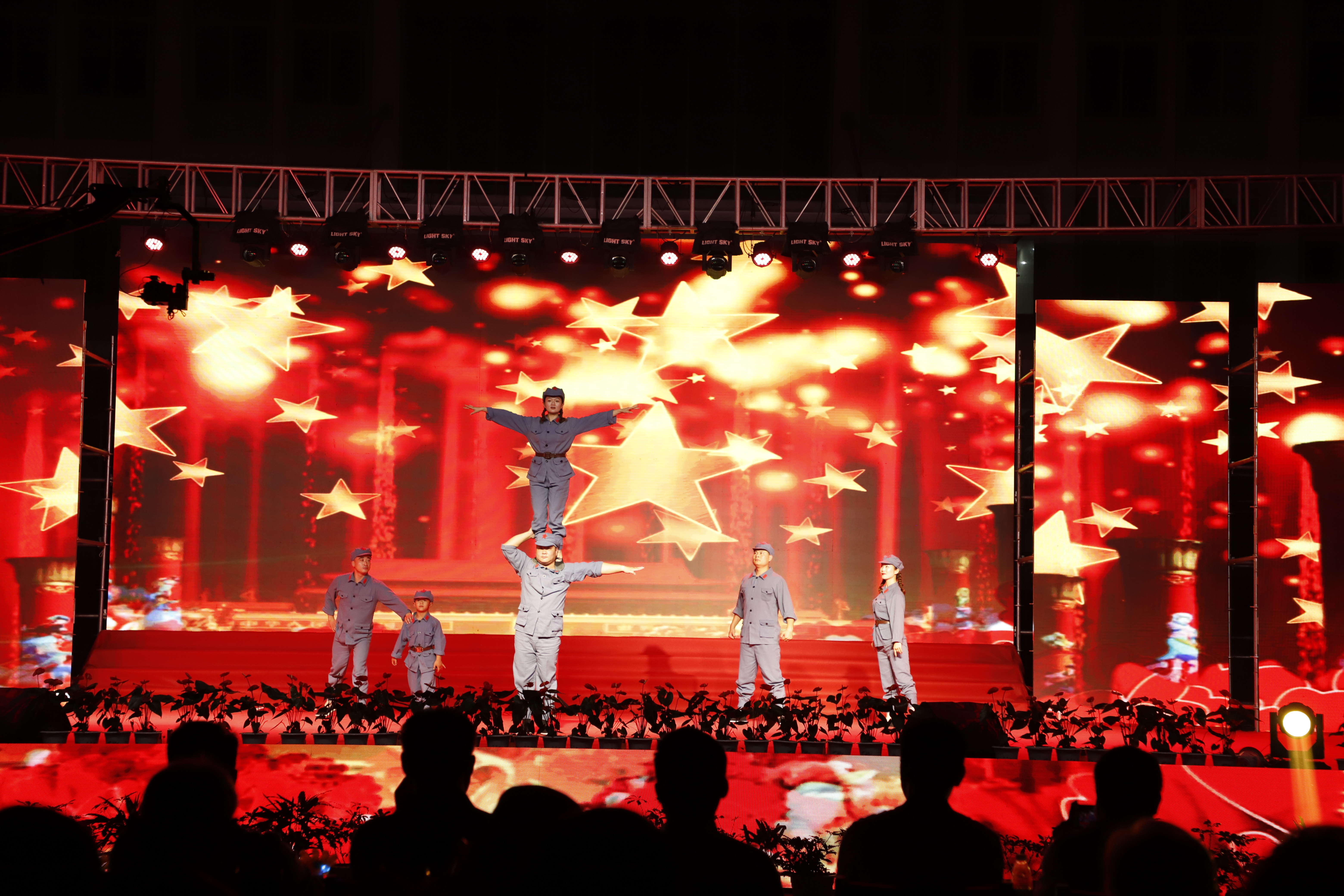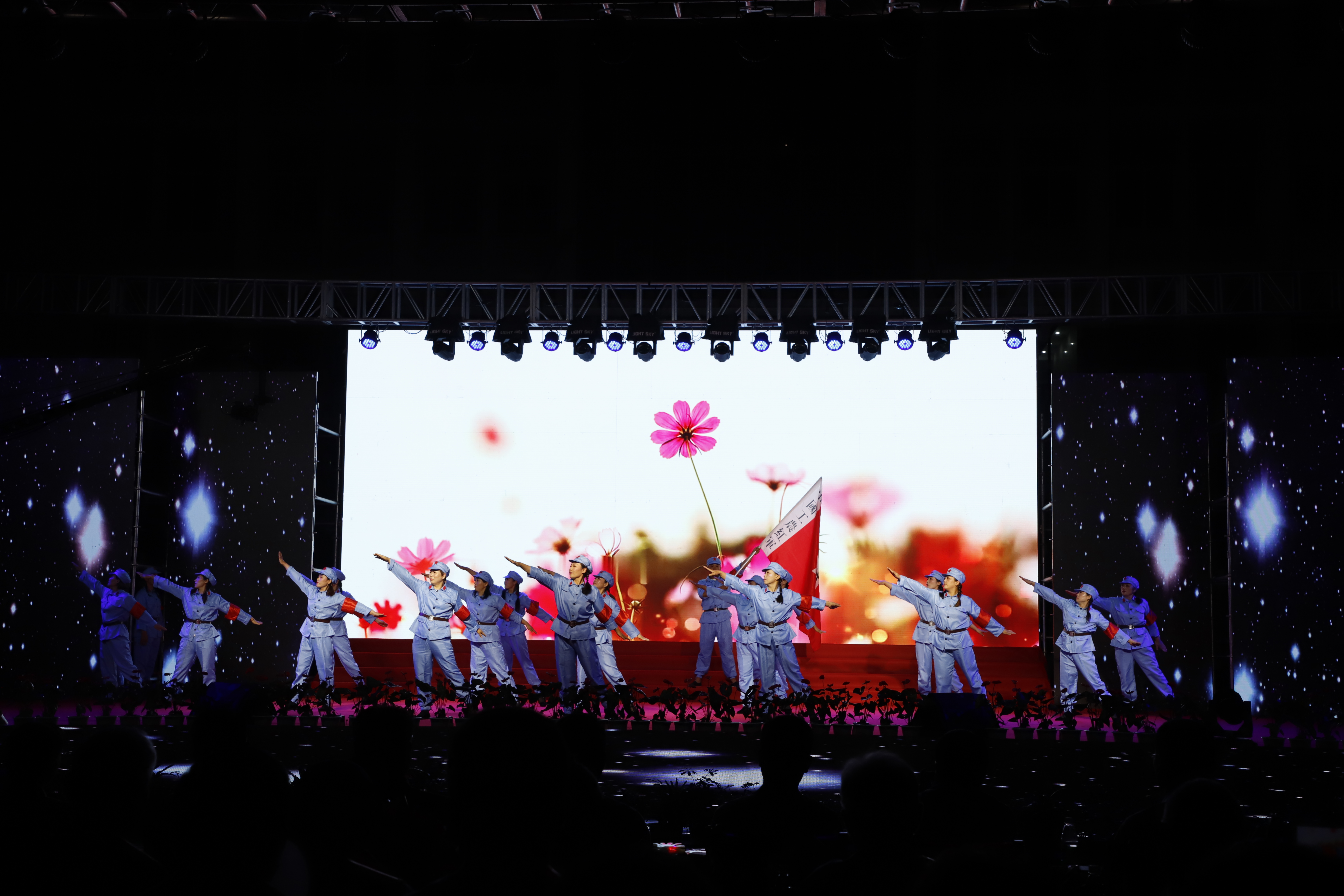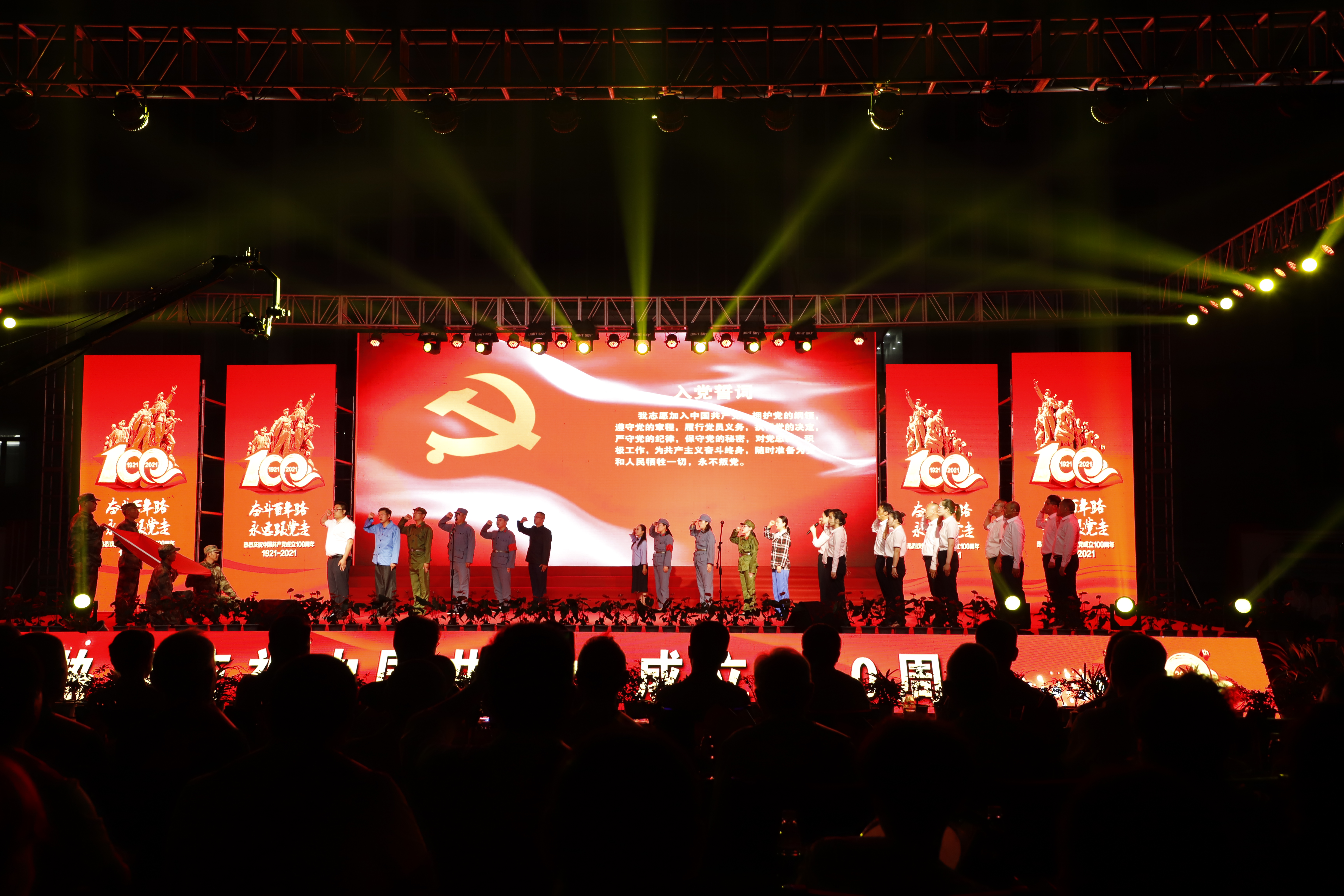 百年征程路漫漫,燦爛輝煌激人心,是中國共產(chǎn)黨指給了人民解放的道路,領(lǐng)導(dǎo)中國走向光明,是中國共產(chǎn)黨引領(lǐng)中華民族走向復(fù)興之路,奮進新時代、開啟新征程,最后,全場人員同唱《沒有共產(chǎn)黨就沒有新中國》,10面國旗、10面黨旗在揮舞,整個舞臺成為一片紅的海洋,整場晚會圓滿落下帷幕。