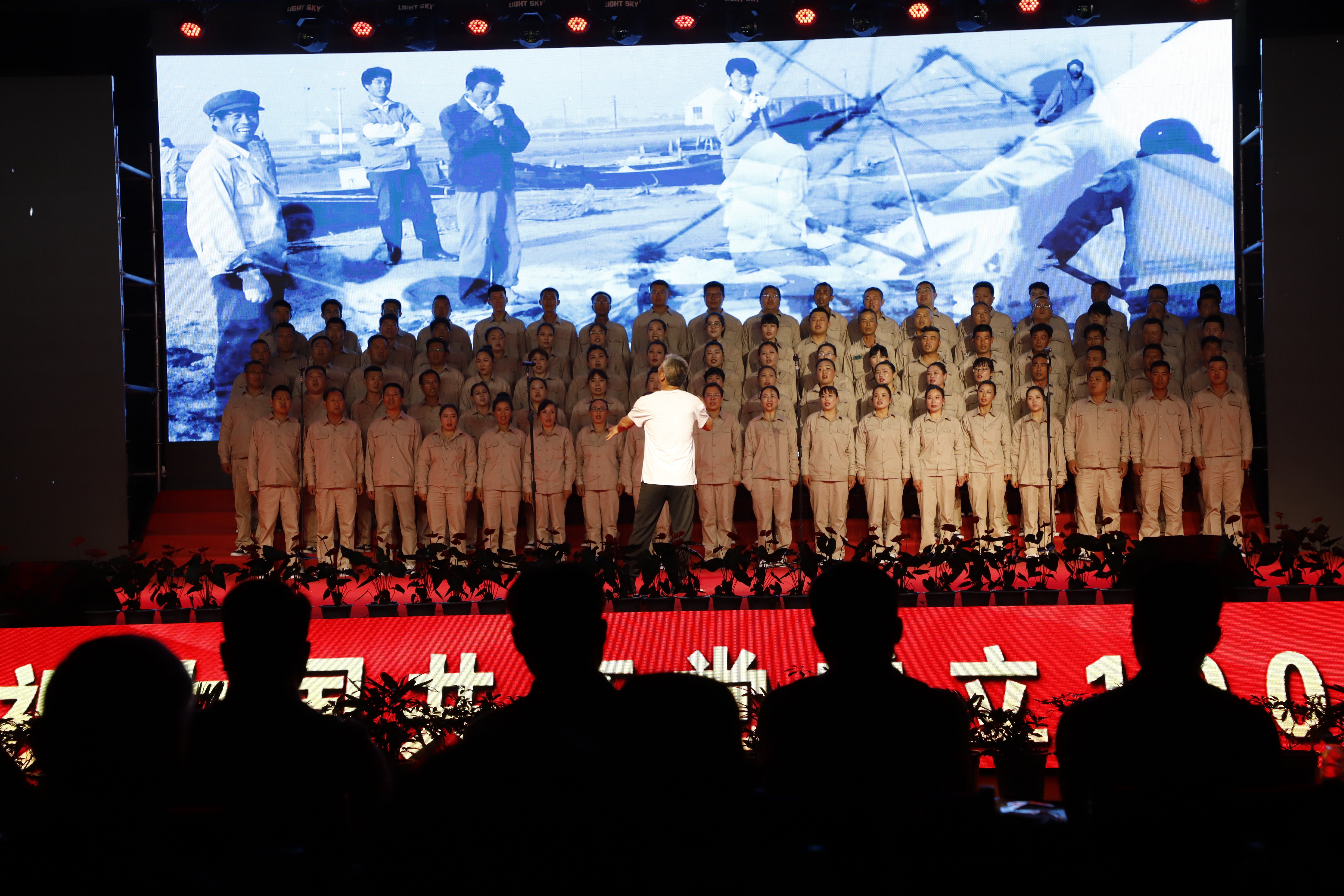 第三篇章為《永遠(yuǎn)跟黨走——追悟紅色精神》。音樂快板《工投人才精英多》表現(xiàn)在工投集團這個大家庭,人才濟濟,精英輩出;大合唱《新時代新家園》《走向復(fù)興》將整場晚會推向高潮。
