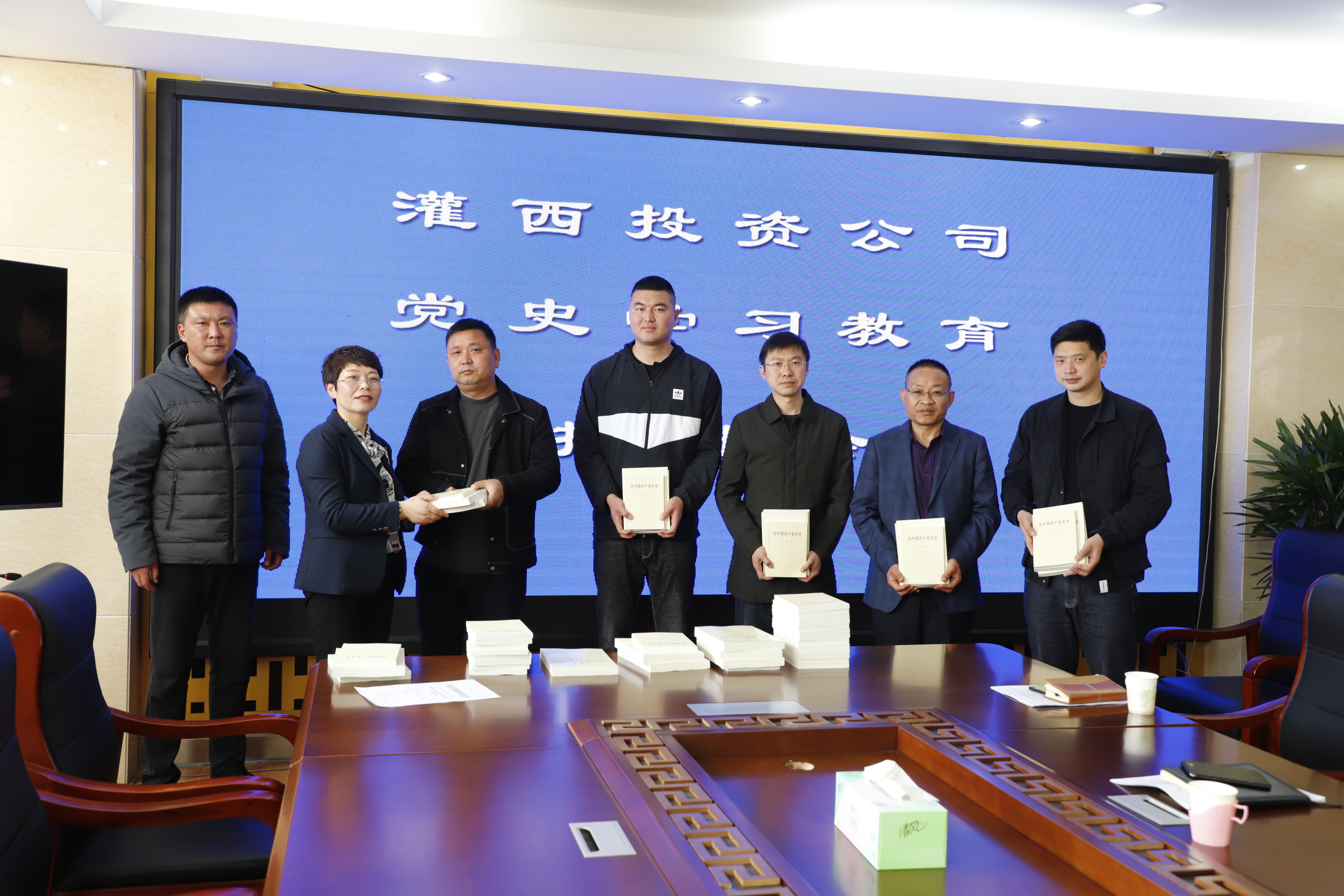 會(huì)議結(jié)束,黨委副書記王宏贈(zèng)送黨史學(xué)習(xí)書籍給各個(gè)支部。(靳靜)