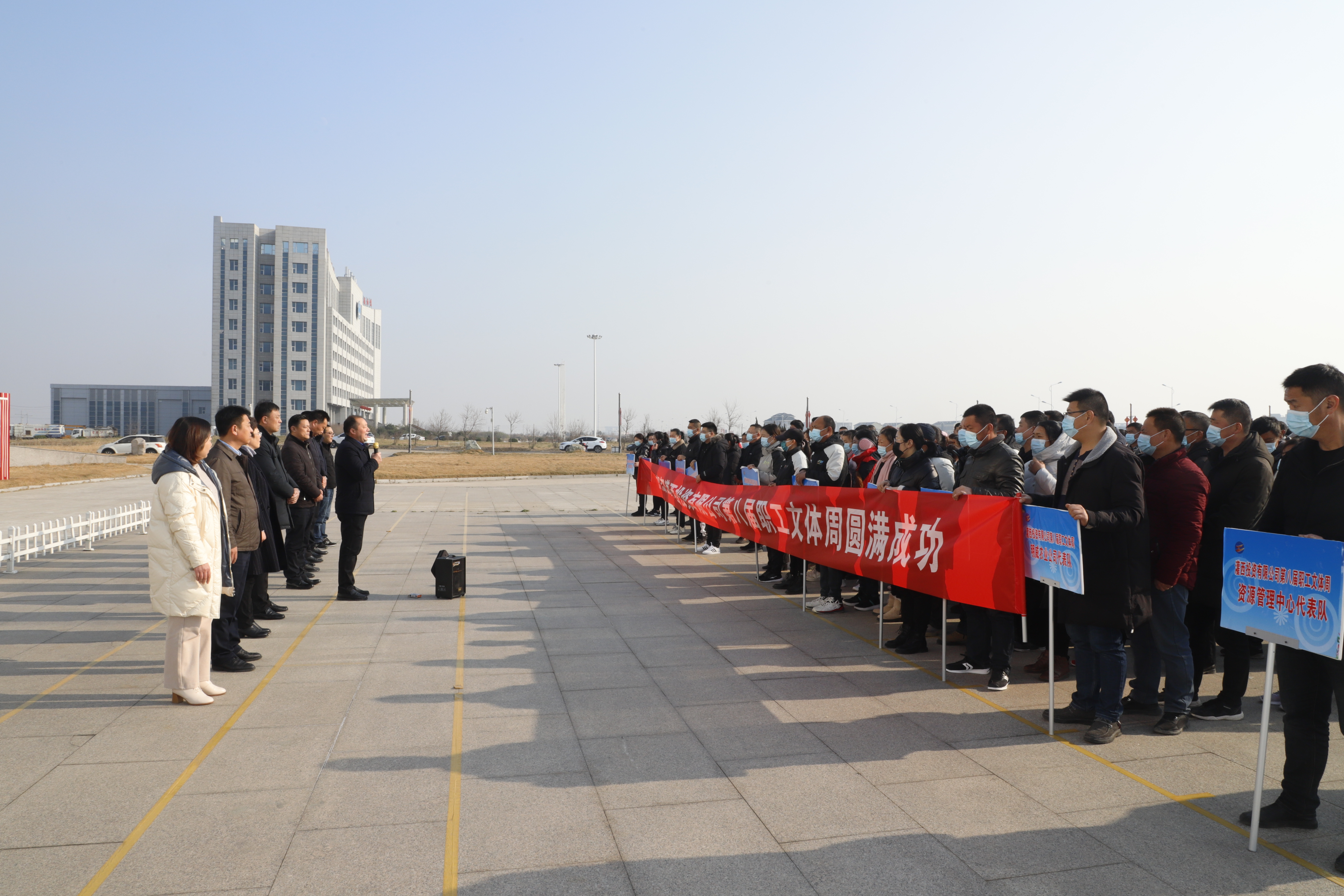 12月22日,灌西投資公司在機(jī)關(guān)大樓前舉辦迎新年“第八屆職工文體周”活動(dòng)。來自公司各條戰(zhàn)線的近500余名職工將參加本次文體周活動(dòng)。公司黨委書記、董事長、總經(jīng)理李國文致開幕詞,黨委副書記、工會(huì)主席王宏宣布本次職工文體周開幕。
