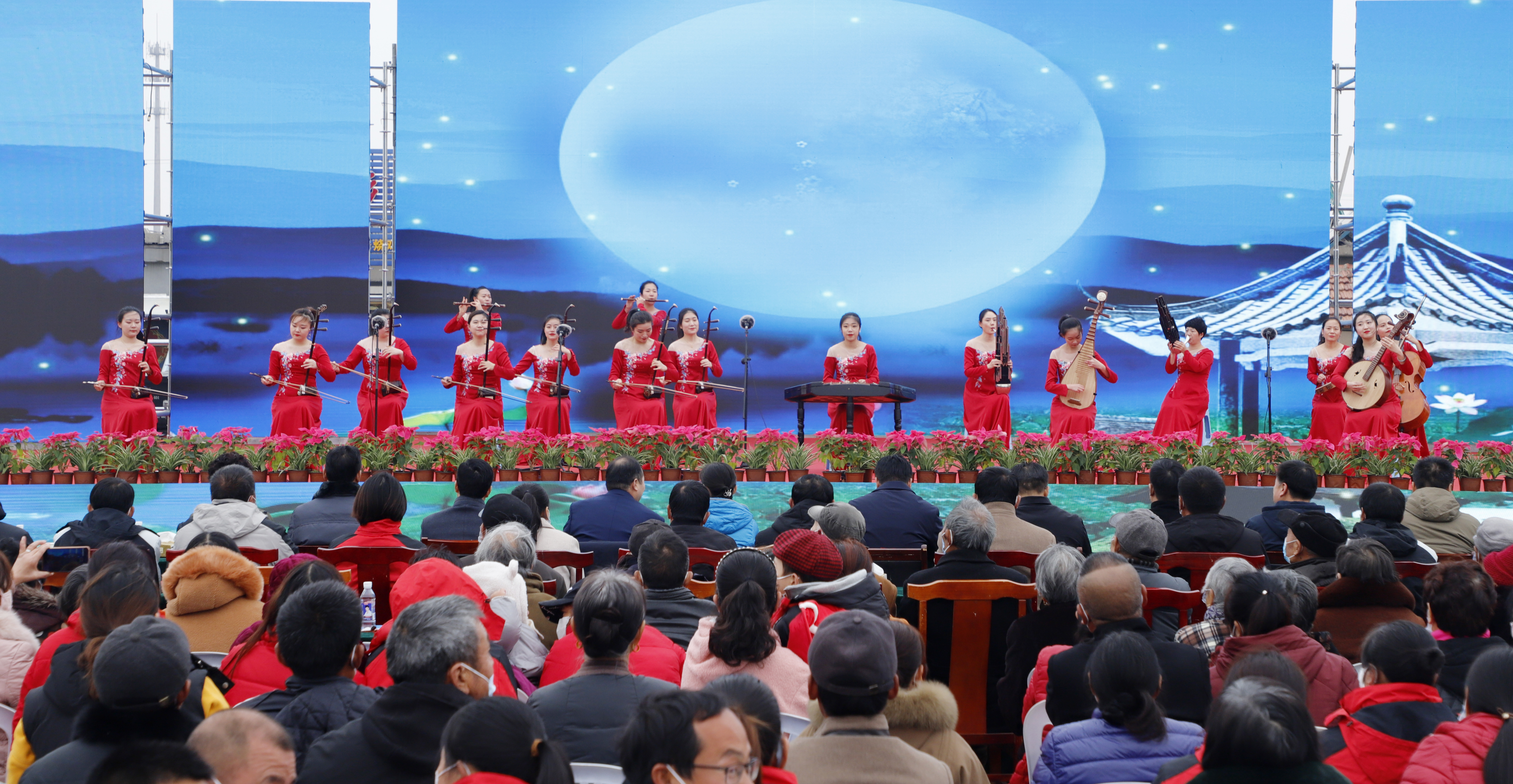 演出在精彩的合奏《水鄉(xiāng)情韻花好月圓》中拉開序幕,現(xiàn)場洋溢著歡樂的氣氛。健身操《向快樂出發(fā)》節(jié)奏歡快,動作利落灑脫,盡情釋放青春活力,獨舞《浣》旋律優(yōu)美,衣袖舞動,舞出溫婉柔美之態(tài)。現(xiàn)代與古典、活力與韻味的巧妙結(jié)合,為現(xiàn)場觀眾帶來了一場視覺上的盛宴。男聲獨唱《我是真英雄》、二胡獨奏《太極琴俠》、舞蹈《我和我的祖國》,以及民樂合奏《樂見西游》,悅耳的人聲與悠遠的琴聲合鳴共振,營造出悠揚美妙的音樂劇場。相聲《歡聲笑語》和淮海戲《借靴》語言幽默風(fēng)趣,劇情跌宕起伏,演員與臺下觀眾時不時的互動更是掀起了一波又一波的高潮。最終,精彩紛呈的演出在女聲獨唱《錦繡前程》中落下帷幕。
