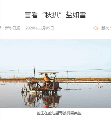 2012年,剛到鹽場工作時,程龍跟著師傅安樹林學習破碴、活碴、扒鹽等。長年累月的風吹日曬,程龍早已沒有8年前的白凈膚色,取而代之的是黝黑的皮膚和成熟的工作經驗,他現在已經是日曬制鹽埒南分公司經理。“剛做到管理崗位時,正趕上秋扒,我?guī)О嘁粋€扒鹽機組。白天黑夜都要站在鹽池格子里,檢查是否有爛泥進入機器。如果爛泥通過輸鹵管道運送到鹽廩上,會形成黑鹽。”那時候,程龍每晚至少要待在鹽池里3個小時,持續(xù)一個多月。“每當看到鹽廩上堆積的潔白如雪的鹽,我就會覺得一切都值得。”前幾年,程龍又在市區(qū)買了一套房子。現在,他家已經有兩套房子、一輛車。程龍家的變化只是鹽工生活的一個縮影。
