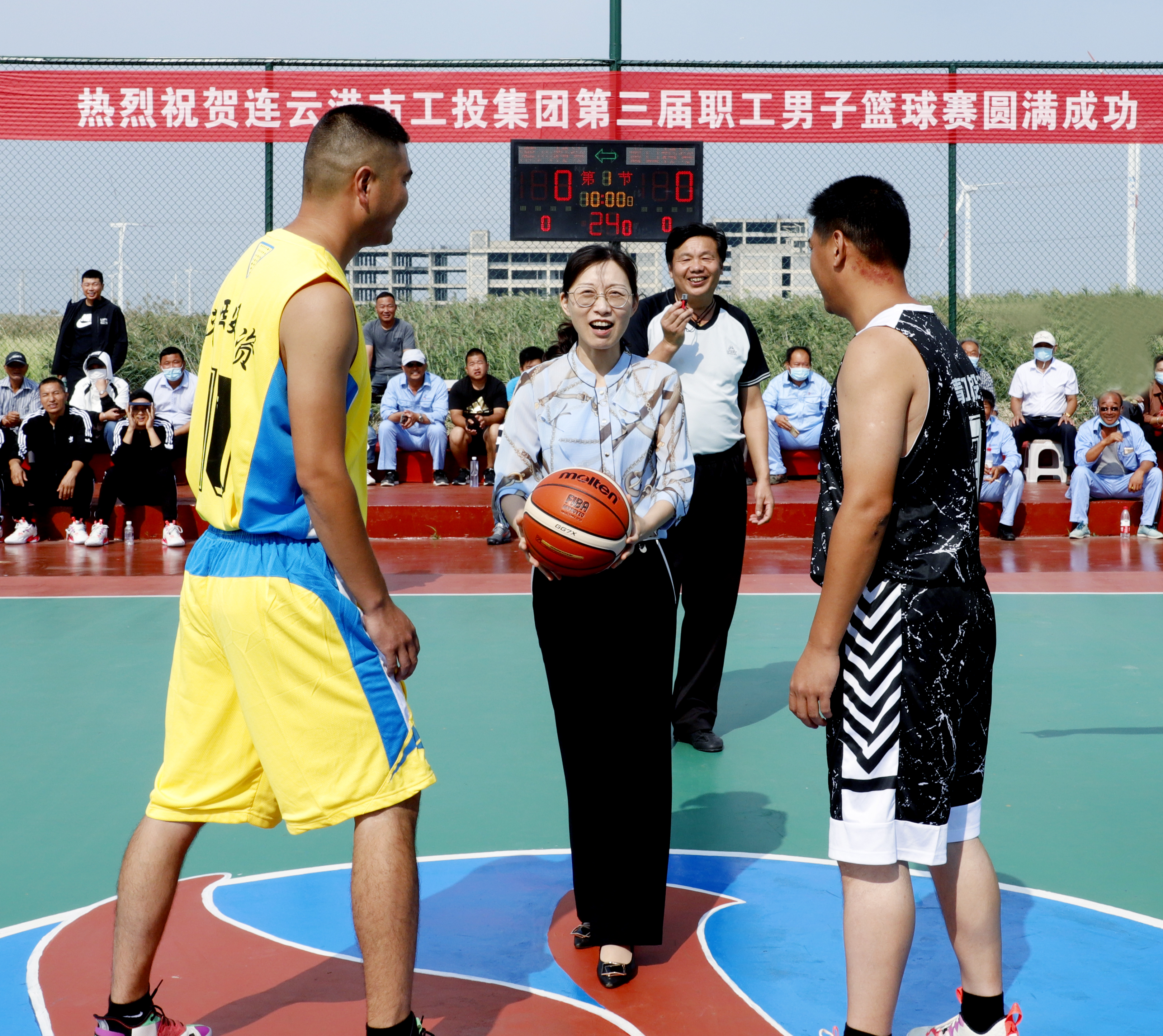 最后,楊龍宣布,連云港市工業(yè)投資集團(tuán)第三屆職工男子籃球賽開幕。一時(shí)間,整個(gè)會(huì)場(chǎng)沸騰起來(lái),彩旗揮動(dòng),掌聲、歡呼聲經(jīng)久不息。