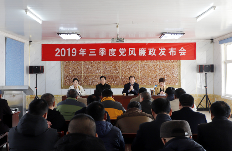 會(huì)上,發(fā)布了2019年三季度黨風(fēng)廉政建設(shè)情況,通報(bào)了公司在三季度大宗物資采購、海淡水養(yǎng)殖池塘承包費(fèi)收繳、工程項(xiàng)目建設(shè)、業(yè)務(wù)招待費(fèi)用使用、人力資源管理、民生實(shí)事等方面的情況。