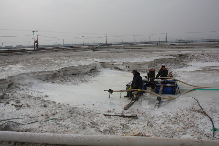 2月6日上午,在新河制鹽分公司的九班,我們看到工人們正在下馬格內(nèi)和格,為盡快灌池生產(chǎn)打好基礎(chǔ),在十班,工人有的正在清除硫酸鈣,有的修整結(jié)晶池埝,而在八班的灘頭,一臺挖掘機正在鹽廩上裝鹽銷售,日曬制鹽公司廣大員工掀起春季生產(chǎn)熱潮,處處都是忙碌景象。據(jù)了解,隨著市場回暖,日曬制鹽公司的原鹽銷售較前兩年同期無論是在數(shù)量上,還是在價格上都有所增長。為了抓住這一難得的銷售機遇,不斷擴大市場占有率,公司計劃組織兩個制鹽分公司在近期開展扒鹽工作,以確保原鹽銷售工作不中斷。為此,各生產(chǎn)單位緊緊圍繞這一工作重心,在抓好日常生產(chǎn)的同時,精心做好扒鹽前的各項準備工作,努力確保扒鹽工作正常有序開展。與此同時,部分尚不具備扒鹽條件的班組則抓緊時間做好除硫池清理、撤格池板的整平以及土工布更換等工作,為春季生產(chǎn)做好各項準備工作。(封楊)