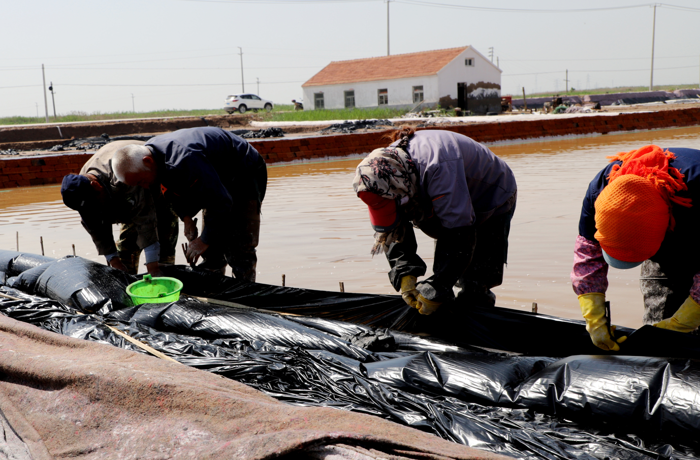 在新河的八班,員工有的在補(bǔ)塑料布,有的在疏通排水溝道,整理繩索,也是忙的熱火朝天。為了抓好二季度工作,八班以生產(chǎn)合格原料食用海鹽為目標(biāo),緊抓有利天時,進(jìn)一步創(chuàng)新海礦鹵勾兌制鹽工藝,細(xì)化工作措施,責(zé)任到人,著力提升原鹽質(zhì)量和產(chǎn)量,目前已生產(chǎn)海水鹽4000噸。