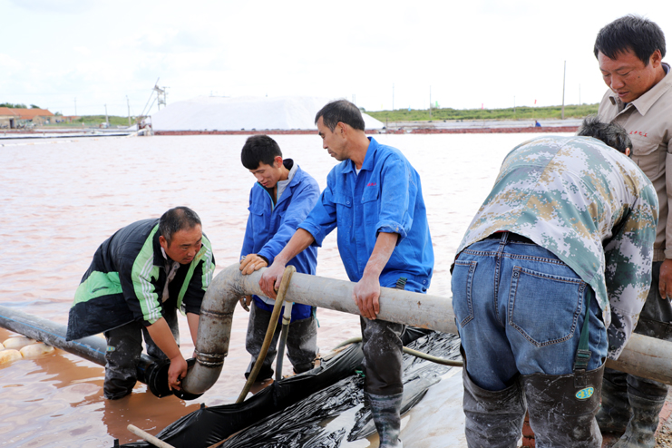 在10班扒鹽現(xiàn)場,我們看到扒鹽機(jī)“T30”操作手正在嫻熟的駕駛著機(jī)器在鹽池內(nèi)緩緩移動(dòng),遠(yuǎn)處的鹽廩上,雪白的原鹽正通過扒鹽篩匯集而下,大廩工也不時(shí)的用分離板進(jìn)行引鹽疏導(dǎo),潔白晶瑩的鹽晶蔚然成廩。據(jù)介紹,在扒鹽設(shè)備上,今年日曬制鹽公司全面推廣使用五寸管道、輕型自吸式電動(dòng)履帶“T30”扒鹽機(jī)、扒鹽機(jī)鹽池循環(huán)路徑,輕型扒鹽機(jī)降低了對鹽池板的損傷,在扒鹽效率上也有了很大提高,扒鹽機(jī)鹽池循環(huán)路徑也進(jìn)一步降低了工人的勞動(dòng)負(fù)荷。據(jù)了解,目前新河、埒南兩個(gè)制鹽分公司共投入8臺扒鹽機(jī)組,中秋小長假以扒鹽2萬多噸,預(yù)計(jì)11月上旬結(jié)束。(張明建)
