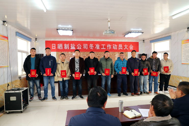 會(huì)前,與會(huì)人員一起現(xiàn)場(chǎng)參觀了埒南制鹽分公司9班的池道堰格,對(duì)硫酸鈣清理和土塘清淤工作作現(xiàn)場(chǎng)指導(dǎo)說(shuō)明,隨后在生產(chǎn)服務(wù)公司會(huì)議室召開(kāi)冬準(zhǔn)動(dòng)員大會(huì),會(huì)議對(duì)冬準(zhǔn)工作進(jìn)行了全面部署,副總經(jīng)理古浩光對(duì)冬準(zhǔn)工作提出要求,副總經(jīng)理張學(xué)峰宣讀了表彰“秋扒”工作先進(jìn)機(jī)組先進(jìn)個(gè)人和安全質(zhì)量標(biāo)兵的決定,紀(jì)委書(shū)記、工會(huì)主席王宏宣讀了關(guān)于開(kāi)展“大干冬準(zhǔn)勞動(dòng)競(jìng)賽”活動(dòng)方案,新河、埒南制鹽分公司四名班組長(zhǎng)就如何干好冬準(zhǔn)工作分別作表態(tài)發(fā)言。
