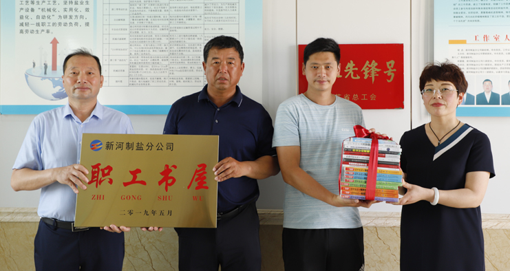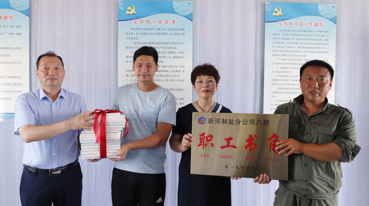 為鼓勵和支持員工不斷更新知識,激發(fā)員工自我學習的能力,提升班組核心競爭力,7月2日上午,灌西公司黨委書記、董事長、總經(jīng)理李國文,黨委副書記、紀委書記、工會主席王宏為日曬制鹽班組贈送圖書并授牌。