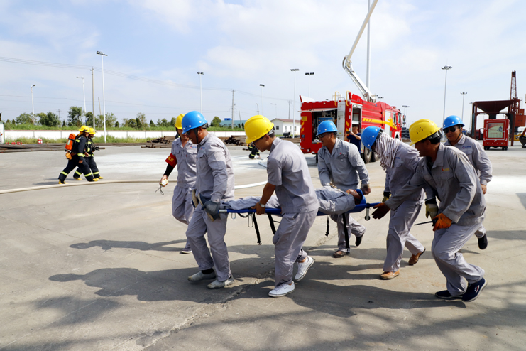 此次演練模擬電器短路和起火事故開展應(yīng)急救援。碼頭現(xiàn)場吊機在操作中發(fā)生主電機電流過載,配電箱出現(xiàn)異常,吊機作業(yè)操作無法正常工作,主機發(fā)出報警,吊機剎車系統(tǒng)出現(xiàn)失靈,電器設(shè)備出現(xiàn)故障,繼而發(fā)生初期電火,報警信號發(fā)出后30秒內(nèi)該區(qū)域內(nèi)所有人員疏散完畢,并撥打119火災(zāi)救援電話,并迅速遏制火情,撲滅火災(zāi),有效保護在場人員人身安全及公司財產(chǎn)安全。整個演練過程,參演員工嚴格按照應(yīng)急預(yù)案要求,積極配合,有序、迅速地完成疏散及滅火等演練任務(wù),人員及財產(chǎn)得到了有效保護,演練達到了預(yù)期效果。