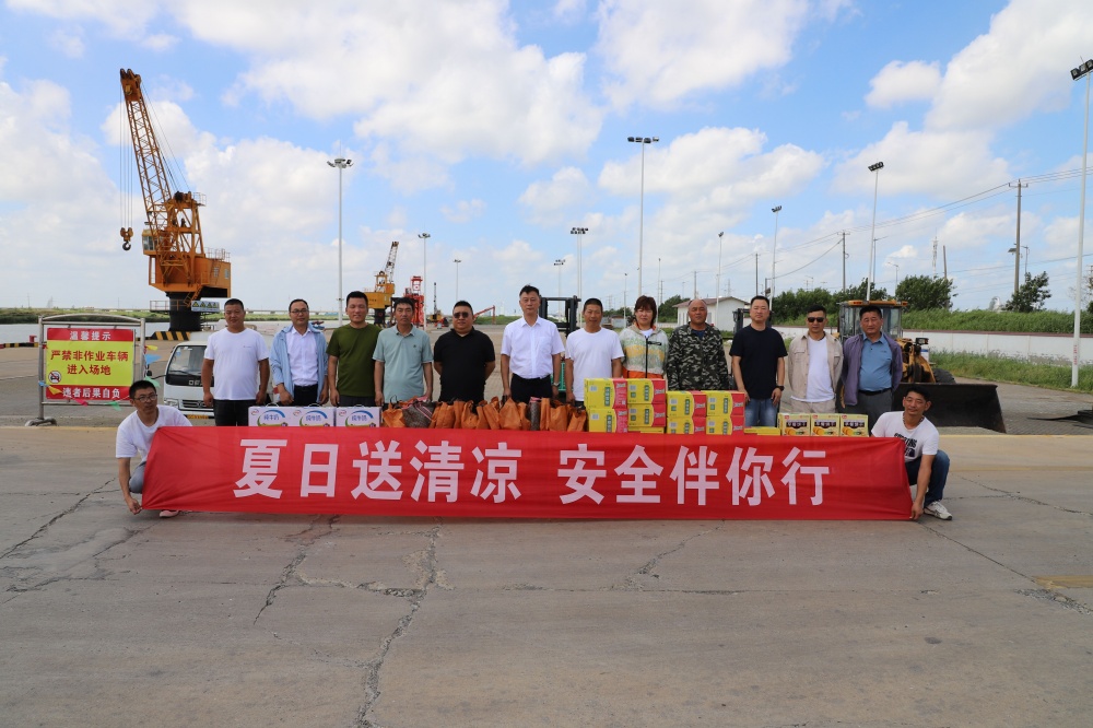 在宵洋物流碼頭,公司總經(jīng)理吳衛(wèi)平帶領(lǐng)的慰問組特意帶來了“清涼禮包”。在觀看塔吊安裝現(xiàn)場作業(yè)的過程中,他眉頭微蹙,仔細觀察著每一個環(huán)節(jié)。隨后,他嚴肅地要求道:“要進一步加強現(xiàn)場的安全管理,把防暑降溫措施切實落到實處,不能有絲毫松懈,務(wù)必確保一線職工能度過一個安全、清涼的夏季。”吊裝梁師傅接過物資時,安全帽下的臉頰掛滿汗珠,卻笑得格外燦爛:“工會想得比家里人還周到!”