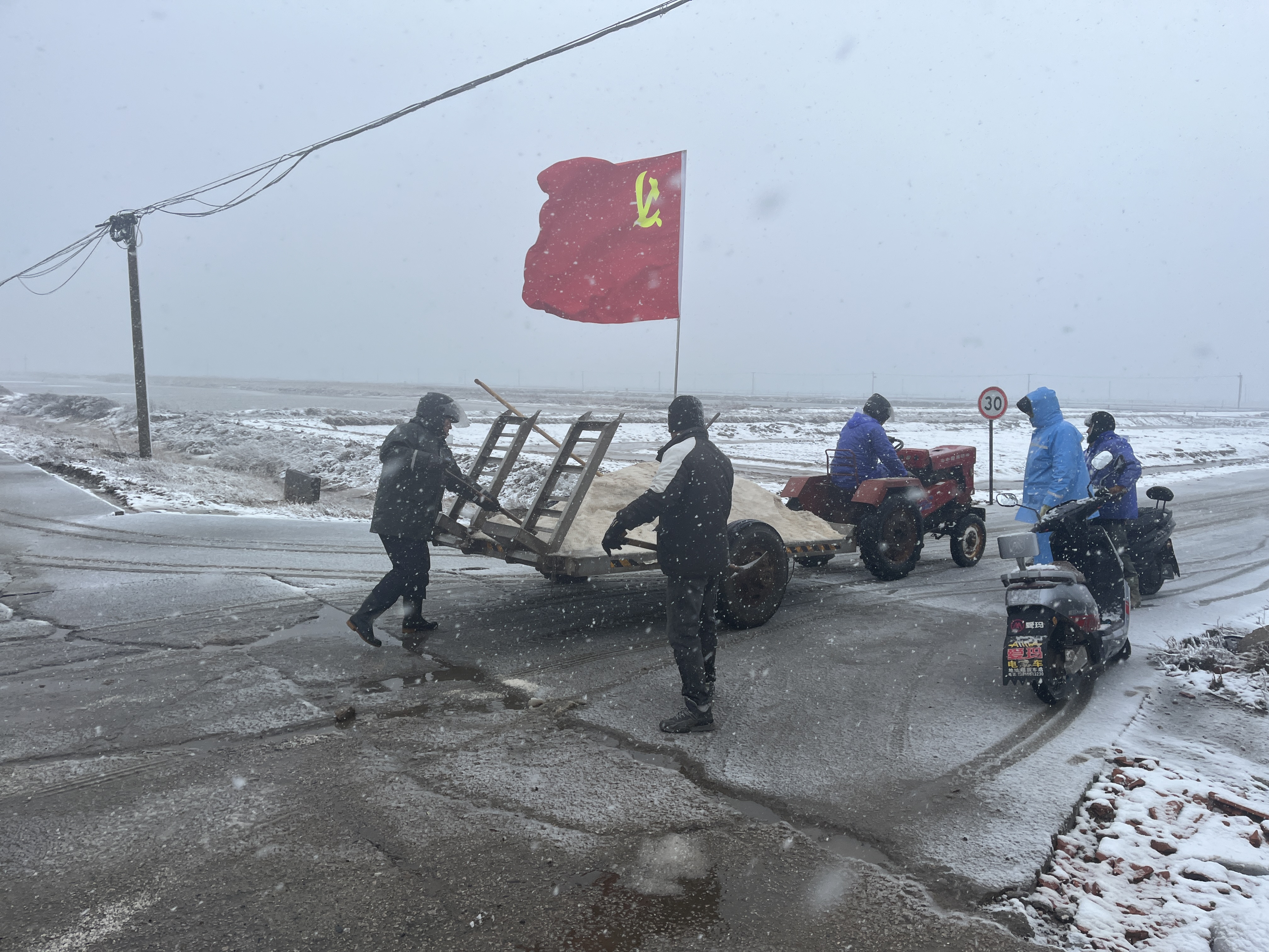 老黨員黃兆柱不惜班組產(chǎn)量,主動提供“融雪鹽”。祝星星、匡洪忠等不畏嚴(yán)寒、鉚足干勁,手拿鐵鍬撒鹽、鏟雪。同時,還積極組織大家清掃各自區(qū)域內(nèi)積雪,共同守護職工出行安全。經(jīng)過大家的努力,南北長約5公里的道路已全部撒上“融雪鹽”。下一步,新河支部黨員先鋒隊將密切關(guān)注天氣變化,全力保證職工上下班道路交通安全。