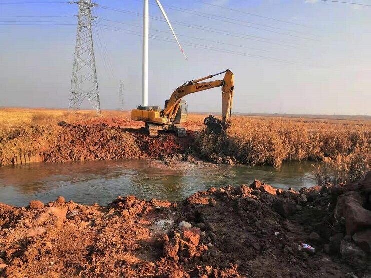 連日來,在明威公司田間河道,挖掘機正在緊張有序地進行清淤疏浚河道。