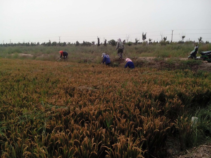 埒南片區(qū)試種的90畝稻田,由于鹽堿地等多種因素生長了較多的雜草。為了保證下一步水稻的收割,公司組織鹽業(yè)分公司女工5人,為農業(yè)分公司稻田進行人工除草。她們穿著水鞋,站在一片金黃的稻田里,用手拔,用鐮刀砍,經(jīng)過她們三天的辛勤勞動,終于將雜草基本清理完畢。(史祥燕)