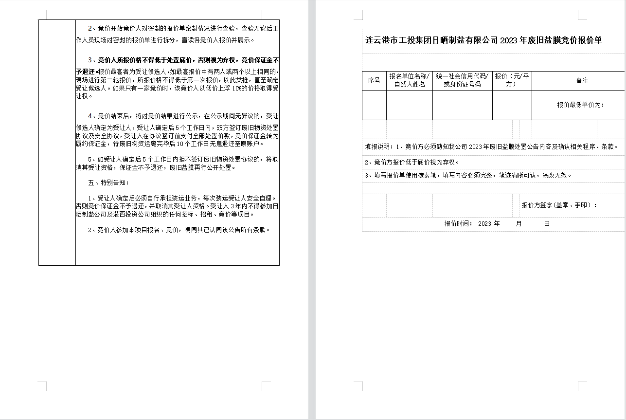 連云港市工投集團日曬制鹽有限公司廢舊鹽膜處置公告
