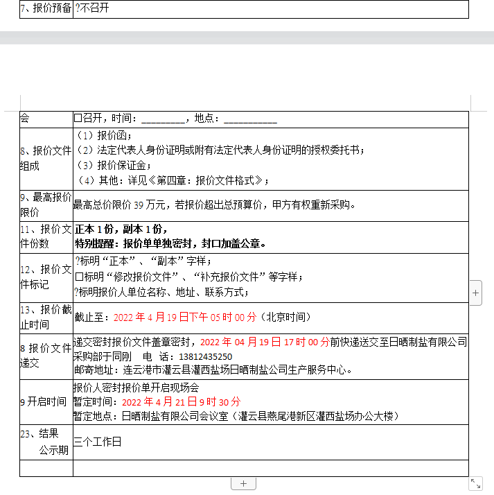 密封報價開啟時間及地點:2022年04月21日前,如有特殊情況時間另行通知。