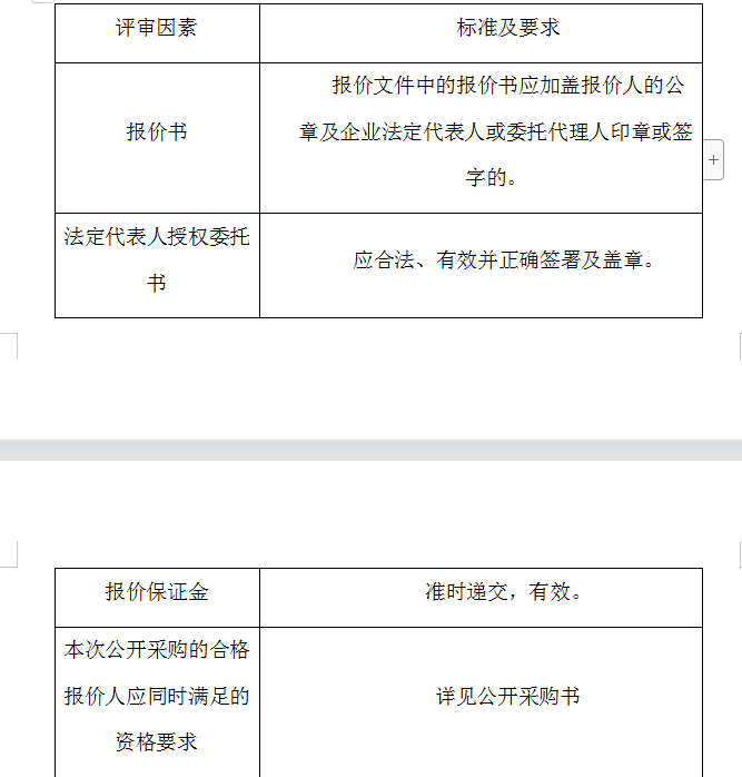 2、評審委員會將根據(jù)以下標(biāo)準(zhǔn)對各報價人進行初步評審,有一項不符合要求的,作否決報價處理,不進入詳細評審。