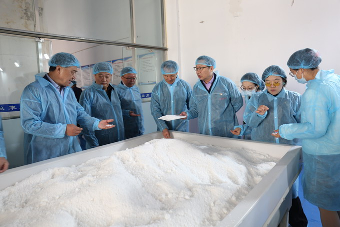 10月13日上午,蘇鹽協(xié)會副理事長伏運景帶領省戰(zhàn)略與發(fā)展研究中心及省經(jīng)濟和信息化研究院相關研究人員一行,到我公司開展編撰省鹽行業(yè)年度發(fā)展報告相關企業(yè)調研。集團公司黨委委員、總會計師匡友本,我公司主要領導陪同調研。伏運景一行參觀了公司雪花鹽車間、包裝鹽車間,聽取公司基本情況和發(fā)展情況介紹。伏運景對我公司充分重視本次調研工作表示感謝,肯定了鹽改以來我公司先導性發(fā)展經(jīng)驗和成就。(金宣)