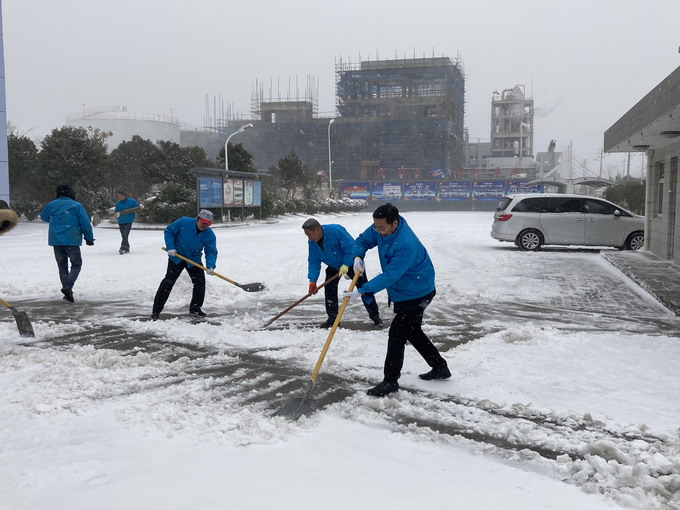 12月29日,連云港市各地普降大雪,氣溫低、積雪厚、道路結(jié)冰,給公司職工的安全出行和生產(chǎn)生活帶來(lái)很多不便。29-30日,公司領(lǐng)導(dǎo)朱桂玉、曹開(kāi)明、田磊、何啟明、邵琴、李忠祥帶領(lǐng)廣大職工群眾開(kāi)展了義務(wù)掃雪活動(dòng)。大家冒著風(fēng)雪,不畏嚴(yán)寒,對(duì)路面積雪進(jìn)行清掃,鏟除了廠區(qū)主干道的冰層,保障了公司職工安全出行和安全生產(chǎn)工作的開(kāi)展。(金宣)