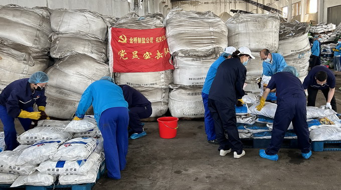6月6日-6月7日,我公司黨委開展“我為黨旗增光添彩”志愿服務(wù)活動。機(jī)關(guān)支部共30名黨員協(xié)助車間整理庫房,共整理成品鹽130余噸。活動的開展進(jìn)一步發(fā)揮了“兩個作用”,積極踐行了志愿服務(wù)精神,為車間一線辦實(shí)事、解難題。(金宣)
