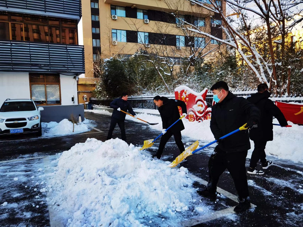 “不需要額外的通知,我們以雪為令”,5日一早,天剛蒙蒙亮,由金融板塊的黨員干部們組成的一群“壯小伙”們便陸續(xù)來(lái)到公司,不需要言語(yǔ)動(dòng)員,他們自覺(jué)的拿起工具,以身作則,不畏嚴(yán)寒,立即投入到掃雪除冰的工作中。他們的身影在風(fēng)雪中顯得格外堅(jiān)定,為全體員工樹(shù)立了良好的榜樣。