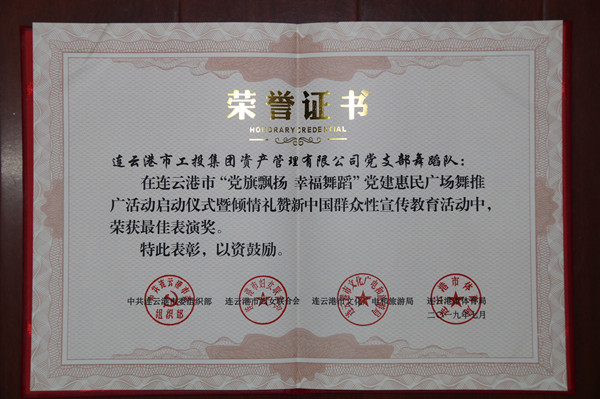 7月16日,連云港市“黨旗飄揚幸福舞蹈”黨建惠民廣場舞推廣活動啟動儀式暨群眾性宣傳教育活動在市文化藝術中心舉行。啟動儀式上,來自工投集團資產(chǎn)管理公司舞蹈隊登臺展演,榮獲市委組織部、市婦聯(lián)、市文廣旅局、市體育局聯(lián)合頒發(fā)的“最佳表演獎”。 為了參加這次活動,公司舞蹈隊12名隊員進行了近一個月的辛苦排練。隊員們在表演中動作精準,以零失誤完成各個動作,獲得觀眾熱烈掌聲和高度評贊。此次登臺演出,充分展示了工投集團職工的精神面貌和公司舞蹈隊廣場舞的扎實基礎。 (資產(chǎn)管理公司宣) |