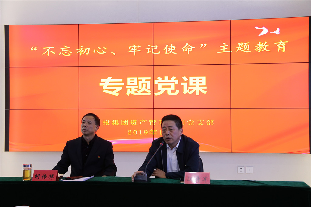 為教育引導(dǎo)黨員干部不忘初心,牢記使命,擔(dān)當(dāng)作為,開(kāi)拓創(chuàng)新,奮力譜寫(xiě)金融工作新篇章,1010日下午,資產(chǎn)管理公司黨支部舉行“不忘初心、牢記使命”主題教育黨支部書(shū)記講黨課活動(dòng),資產(chǎn)管理公司黨支部書(shū)記、董事長(zhǎng)胡傳祥同志講授“初心不改,擔(dān)當(dāng)作為,創(chuàng)造無(wú)愧于時(shí)代的工作業(yè)績(jī)”主題黨課,集團(tuán)黨委第一指導(dǎo)組同志到會(huì)指導(dǎo)。