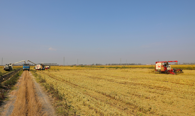 據了解,今日搶先收割的是今年引種的新品優(yōu)質粳稻南粳58,試種面積大約100畝,具有南粳系列品種的柔、香、糯、白等優(yōu)良食味特征。