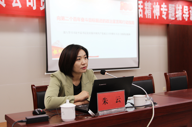 為了深入學(xué)習(xí)貫徹習(xí)近平總書記在慶祝建黨100周年大會上的重要講話精神,進(jìn)一步教育引導(dǎo)全體黨員干部學(xué)黨史、悟思想、辦實(shí)事、開新局,不斷從黨史中領(lǐng)悟前進(jìn)的智慧和力量。10月21日下午,青口公司舉辦貫徹建黨100周年講話精神專題輔導(dǎo)課,邀請市委黨校法政教研室主任,黨史學(xué)習(xí)教育市委宣講團(tuán)成員朱云同志作專題輔導(dǎo)課。公司領(lǐng)導(dǎo)班子成員、各單位黨政工負(fù)責(zé)人、機(jī)關(guān)全體管理人員以及基層單位在職黨員參加。會議由黨委副書記梁永主持。