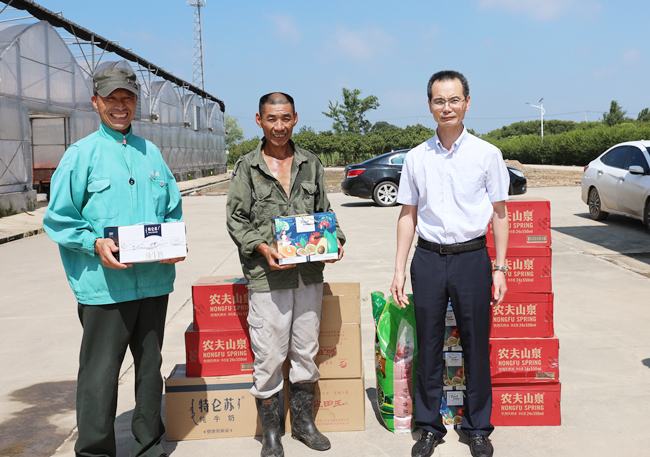 ? ? ? ?7月30日上午,公司領導班子成員分組帶著綠豆、白糖、礦泉水等防暑降溫物品,到各基層單位為職工們送去絲絲清涼和滴滴關愛。在慰問現(xiàn)場,領導們親自為一線職工送上降溫物品,并叮囑他們要提高自我保護意識和安全防范能力,合理安排工作時間,注意防暑休息。