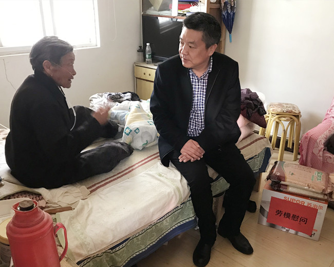 ? ?4月30日上午,公司黨委書記、董事長(zhǎng)、總經(jīng)理史祥平帶領(lǐng)相關(guān)部門人員,來到市勞模吳從蘭家中,送去組織的關(guān)懷和溫暖。