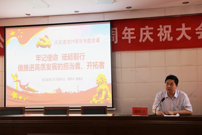 為了慶祝中國(guó)共產(chǎn)黨建黨99周年,繼承和發(fā)揚(yáng)黨的光榮傳統(tǒng),彰顯基層黨組織的戰(zhàn)斗堡壘作用和黨員先鋒模范作用,6月28日上午,青口投資公司隆重召開(kāi)紀(jì)念建黨99周年慶祝大會(huì)暨“七一”表彰大會(huì)。會(huì)議由黨委副書記、工會(huì)主席梁永主持,全體領(lǐng)導(dǎo)班子成員、各單位黨政負(fù)責(zé)人、優(yōu)秀黨員代表、機(jī)關(guān)全體管理人員參加會(huì)議。