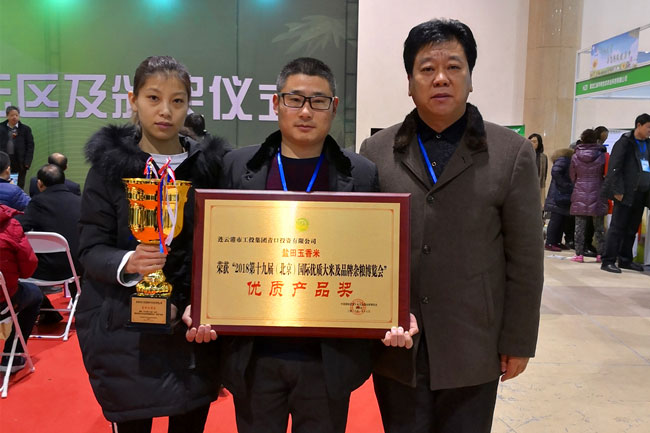 新年伊始,萬象更新,公司 “鹽田玉”大米再獲重量級榮譽(yù)。在 2018第十九屆(北京)國際優(yōu)質(zhì)大米及品牌雜糧博覽會(huì)上,我公司鹽田玉香米經(jīng)過產(chǎn)品品質(zhì)檢測、品嘗、營養(yǎng)分析等程序?qū)徍耍耆显u獎(jiǎng)要求,在600多家參展企業(yè)中脫穎而出,被授予“優(yōu)質(zhì)產(chǎn)品獎(jiǎng)”榮譽(yù)稱號。