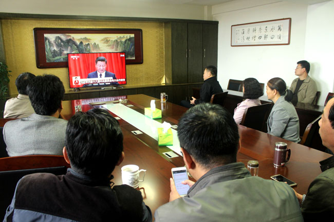 大家早早就集中到各收看點(diǎn),做好收看準(zhǔn)備。報(bào)告伊始,大家聚精會(huì)神,仔細(xì)聆聽報(bào)告內(nèi)容,并不時(shí)做著記錄。大家一致認(rèn)為黨的十九大是在全面建成小康社會(huì)決勝階段、中國(guó)特色社會(huì)主義進(jìn)入新時(shí)代的關(guān)鍵時(shí)期召開的一次十分重要的大會(huì),會(huì)議的召開是全黨、全國(guó)各族人民政治生活中的一件大事。習(xí)近平總書記所作的報(bào)告全面總結(jié)了黨的十八大以來(lái)治國(guó)理政的輝煌成就和寶貴經(jīng)驗(yàn),展望了新時(shí)代中國(guó)共產(chǎn)黨的歷史使命、新時(shí)代中國(guó)特色社會(huì)主義思想和基本方略。習(xí)近平總書記的報(bào)告高瞻遠(yuǎn)矚,氣勢(shì)恢宏,總攬全局,振奮人心。