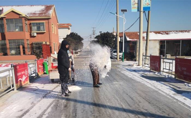 近日,由于低溫雨雪天氣造成場區(qū)周邊道路面結(jié)了厚厚的一層冰,致使職工群眾出行受到一定影響。服務中心搶抓天時漸好時機,多次組織職工鏟冰除雪,減少路面冰滑對出行造成的不利因素。因車輛行人來往串流,路面冰雪被壓得嚴嚴實實,鏟冰除雪工作比較艱難,中心全員在低溫環(huán)境中俯下身子干得熱火朝天。黨員干部發(fā)揮不怕苦、不怕累的模范帶頭精神,用他們的熱情溫暖了所經(jīng)之處。路過的居民紛紛說道:“感謝你們的辛勤付出,通過你們的清理,我們走的也踏實多了。”(陳琛)